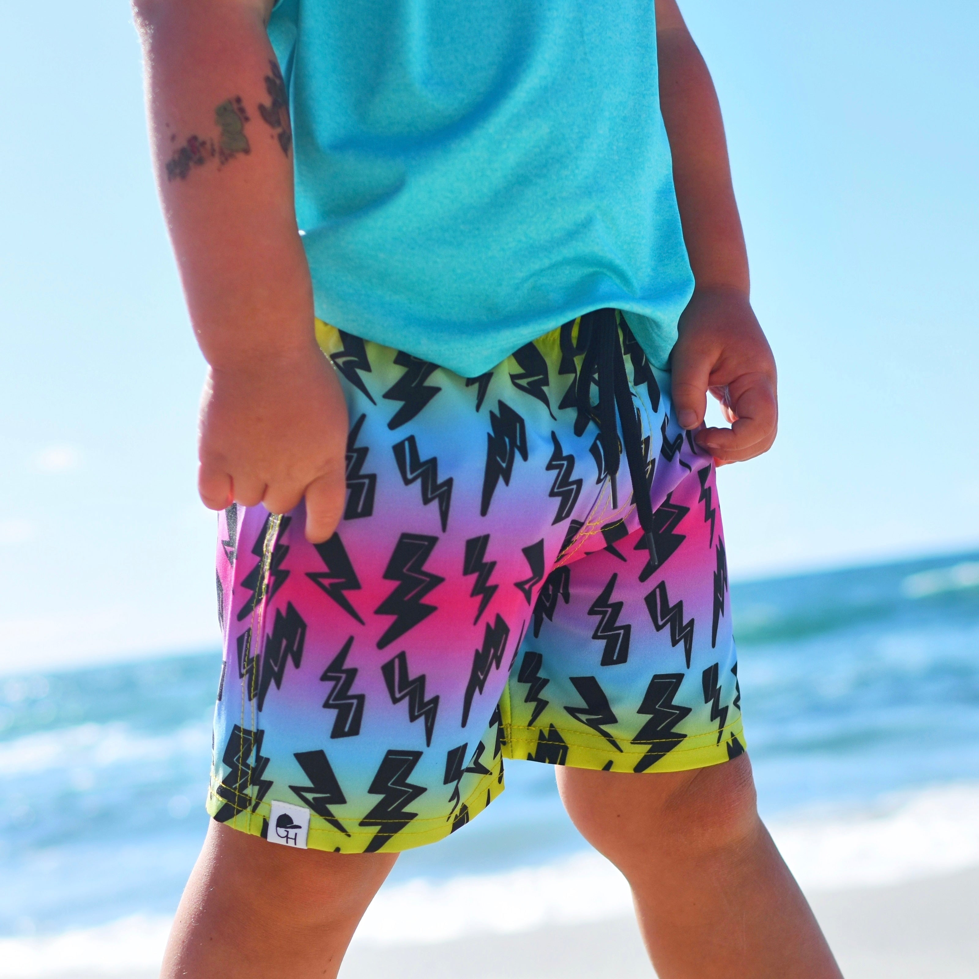 Rainbow Bolt Neon Spotfast™ Hybrid Swim Shorts
